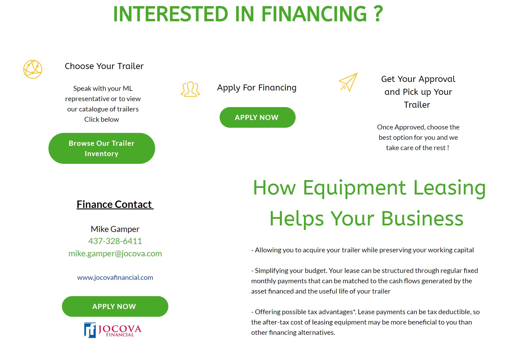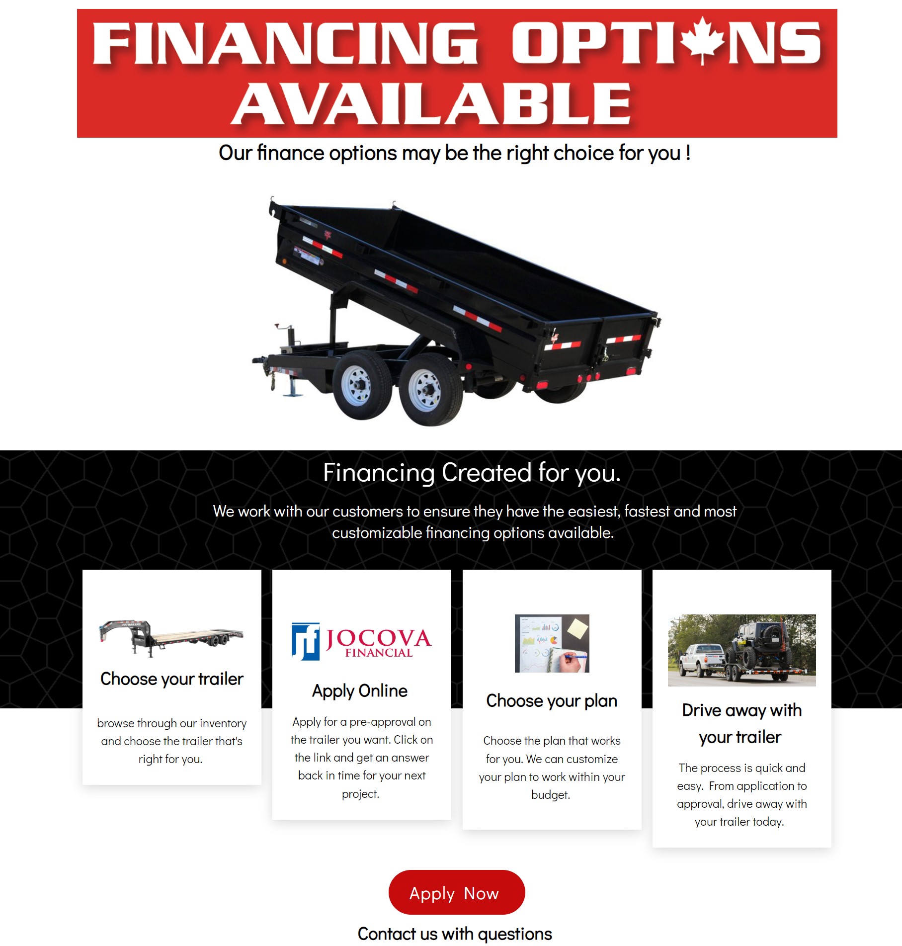 Let your customers apply online when they want. Get a custom branded finance page for your customers to apply online with ease. Links to your current site with ease.